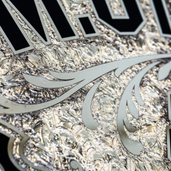グルーチップ(膠を使用しガラスをランダムに割る技法)されたバック・グラウンド部分にはシル