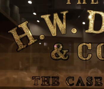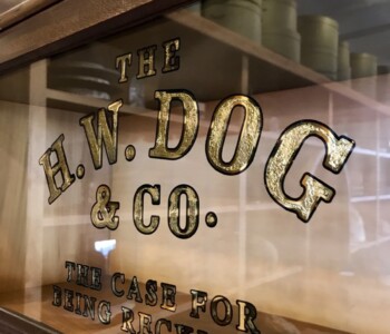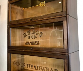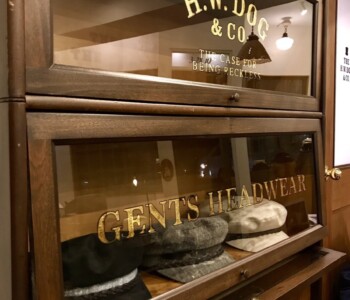 表参道の帽子ブランド、THE H.W.DOG & Co. 店内のアンティークキャビネットのガラス。